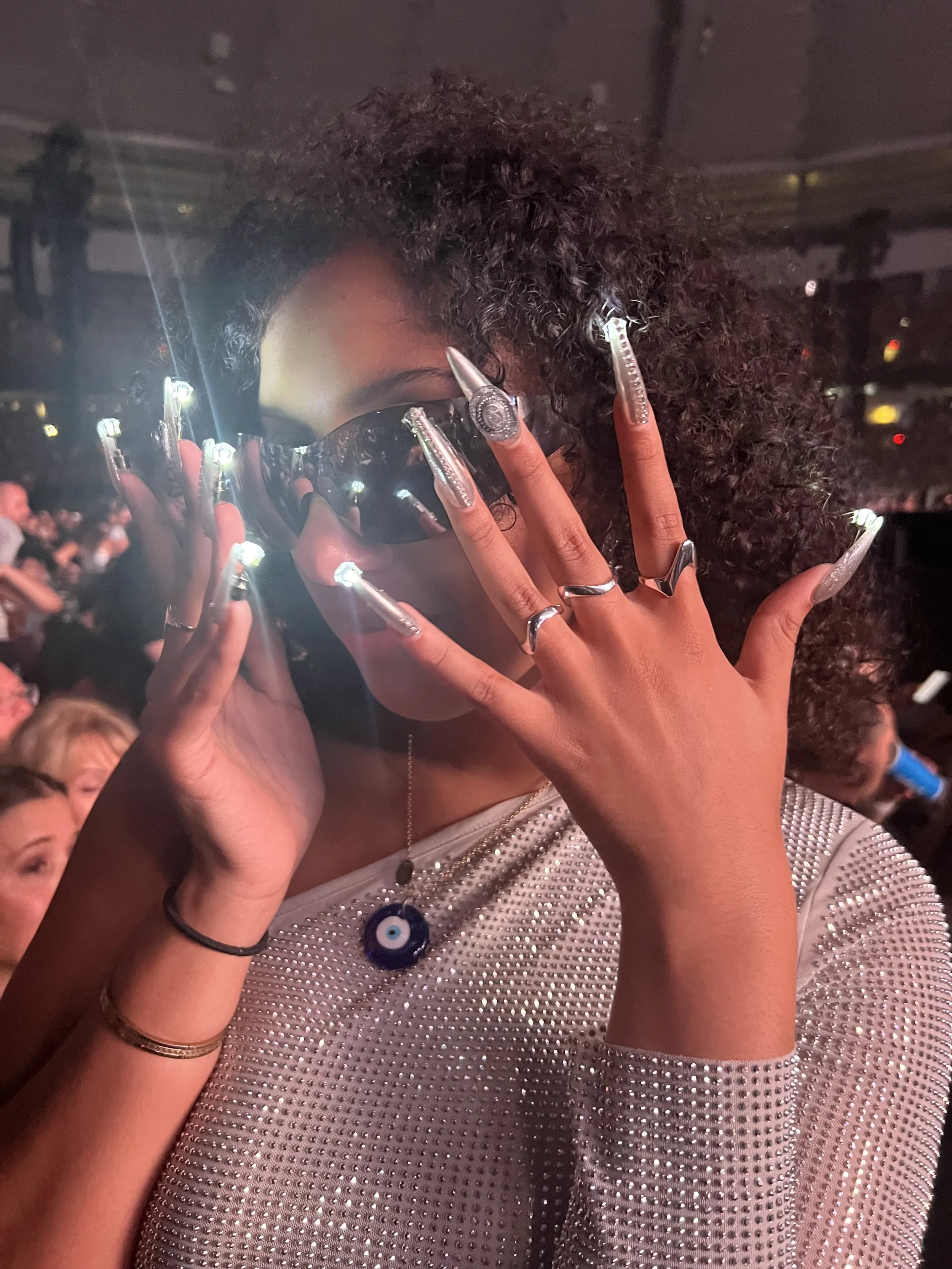 While Liv’s appointments are a safe bubble for unabashed self-expression and boundary-pushing nails, what happens when clients step outside the studio doors? Despite a growing appreciation for Liv’s style of nail art, a notion of what “acceptable” nails look like persists. Many workplaces demand neutral, monotone, short nails. The barely-there style of “princess nails” mimics the Royal Family’s beauty protocol as a way to achieve elegance. While there is inherently nothing wrong with this style of nails, its elegance is defined by its proximity to whiteness, and in the case of princess nails, to colonial power. In contrast, long, exuberant nails maintain the connotation of “unprofessional,” “low-class,” and “ghetto,” largely because of their connection to Black expression and fashion, which has historically been marked as deviant.