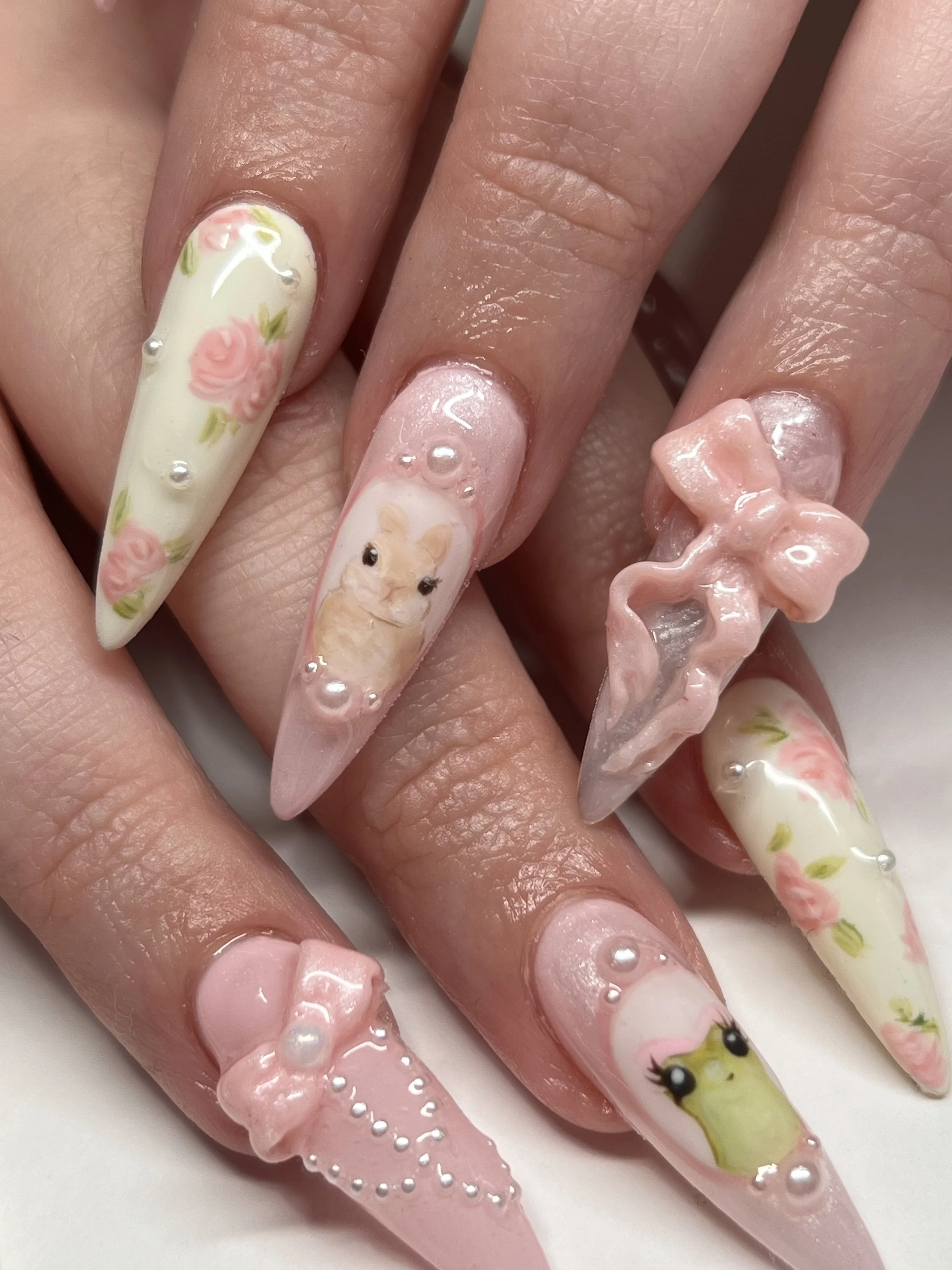 There’s an intriguing juxtaposition to putting childhood characters onto long stiletto nails that could tear up the playground; it’s almost like a symbolic meeting of the ways one has engaged with play over time. From her experience working with clients, Liv believes nails are a go-to vehicle for exploration and play because of the scale of the medium.