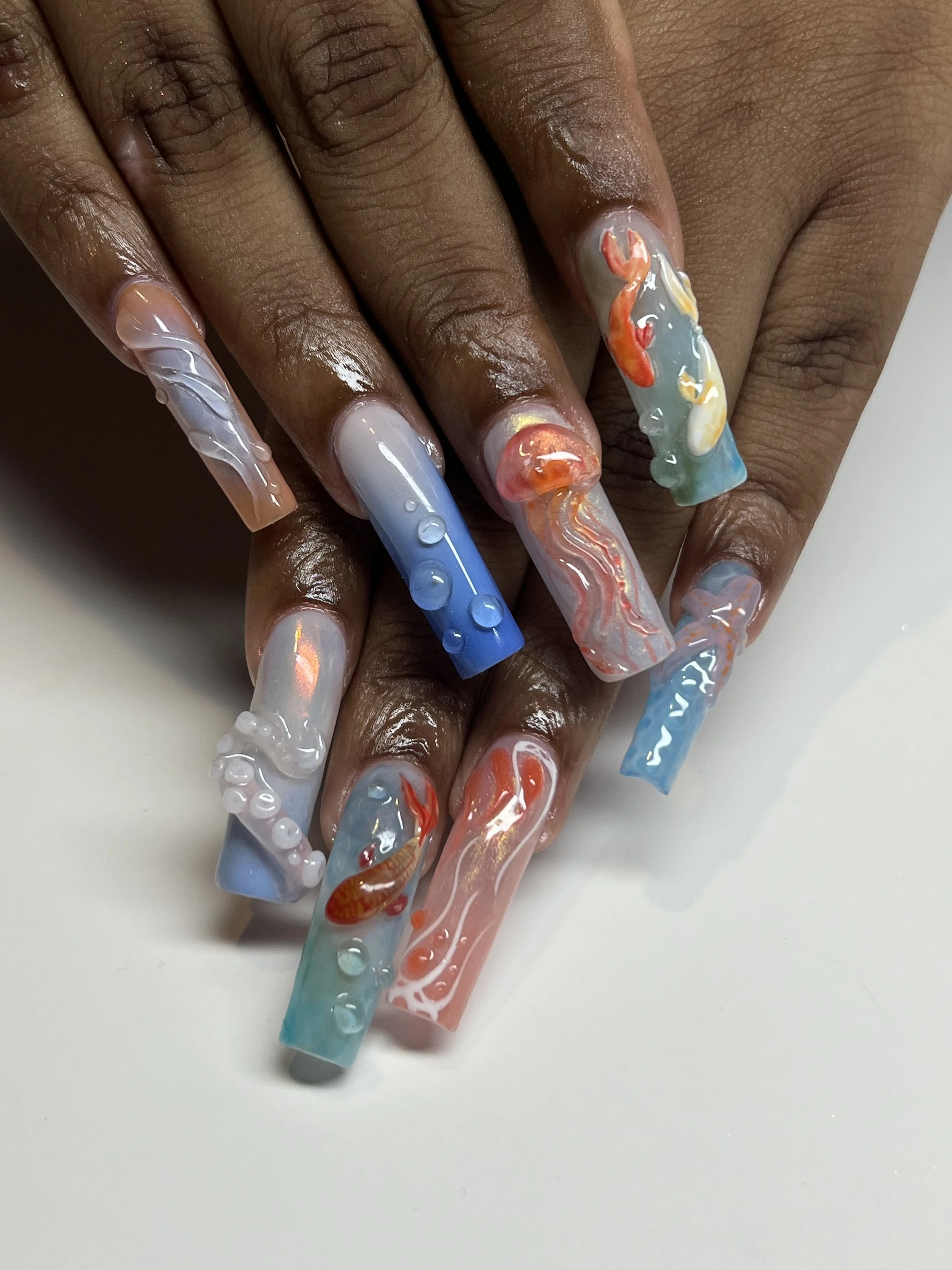 “I do have Black girls who come in and feel a little nervous. They say they don’t want to do too much, or they say ‘so and so said this about long nails’ or ‘my hands are too big,’ and I'm like, ‘nope, we're not doing that.’ I want to redirect them towards thinking about their nails and expression in a way that's really fun, and more specifically, beautiful, desirable, and perfect, no matter what social space we are in.”